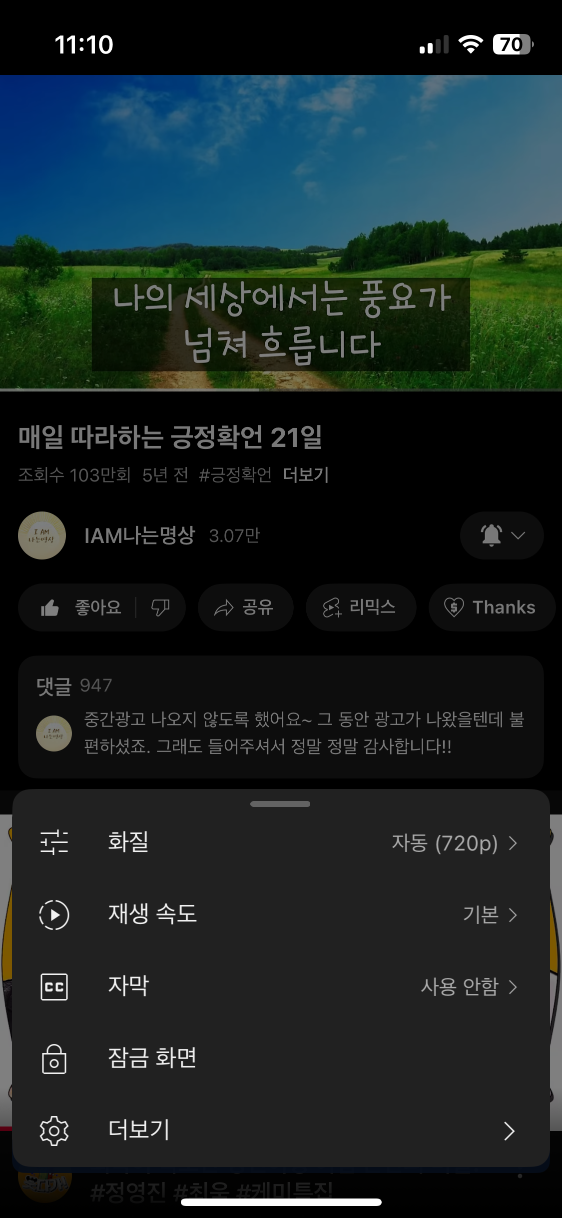 1. 재생중인 영상 화면 오른쪽 상단에 '톱니바퀴' 아이콘 클릭
