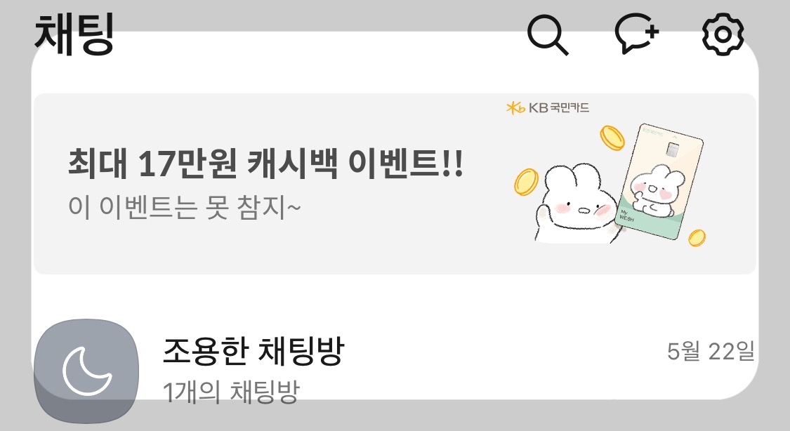 그럼 다시 채팅방 목록에 <나와의채팅> 방이 보입니다.