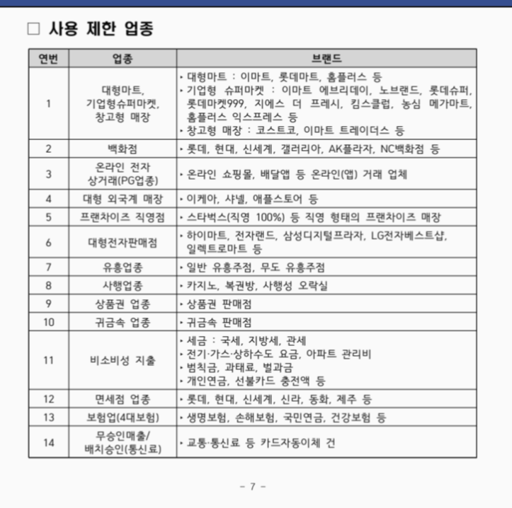 3) 민생회복 소비쿠폰 사용불가한 곳!!!