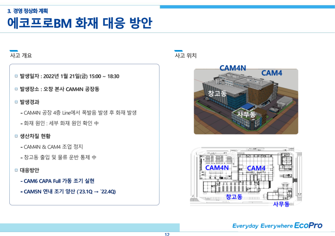 에코프로비엠 화재 대응 방안 및 내부자거래 관련 입장 및 계획