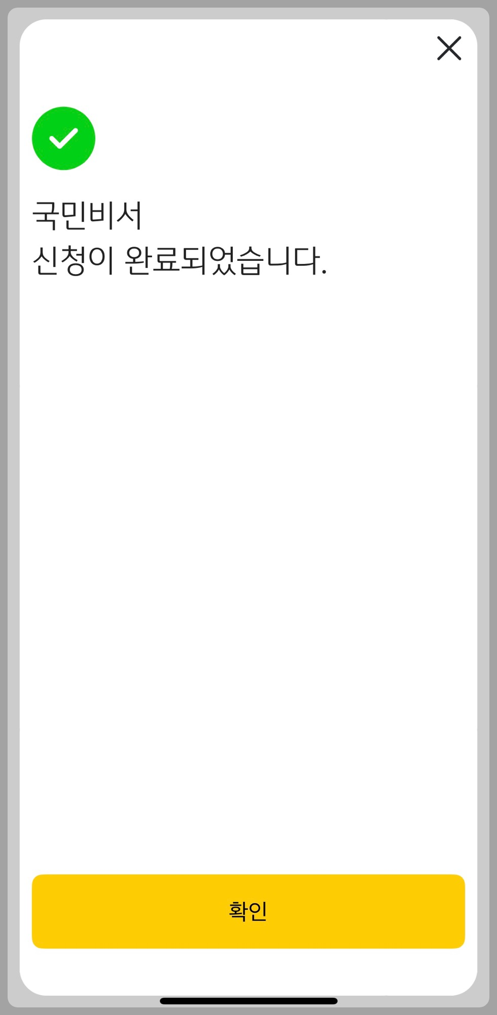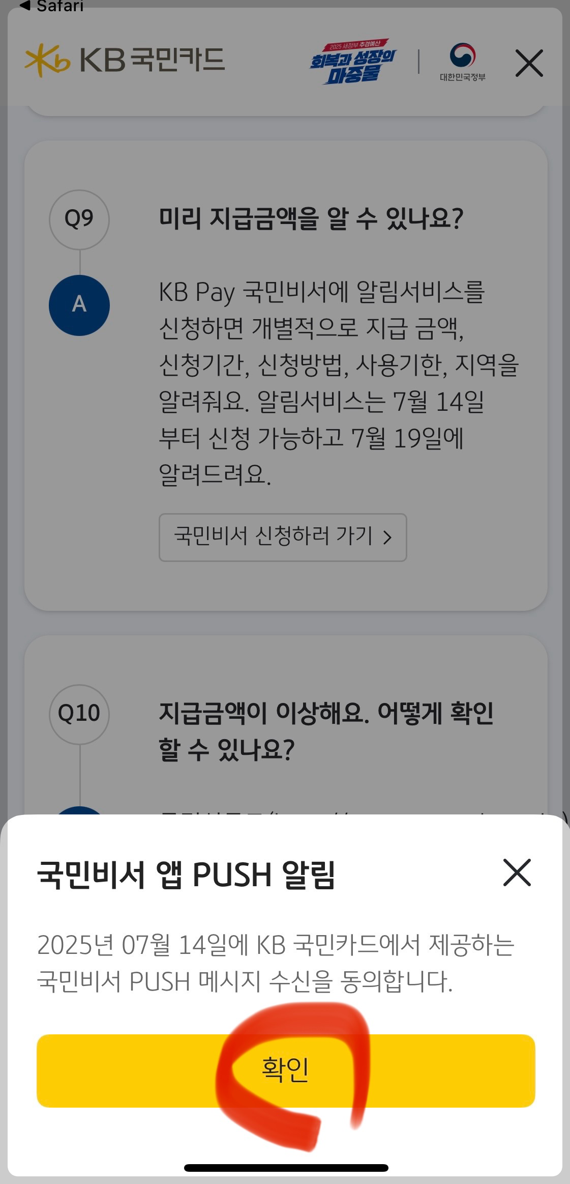 10) 이제 거의 다 왔습니다. 국민비서 앱 push 알림에 [ 확인] 눌러주세요.