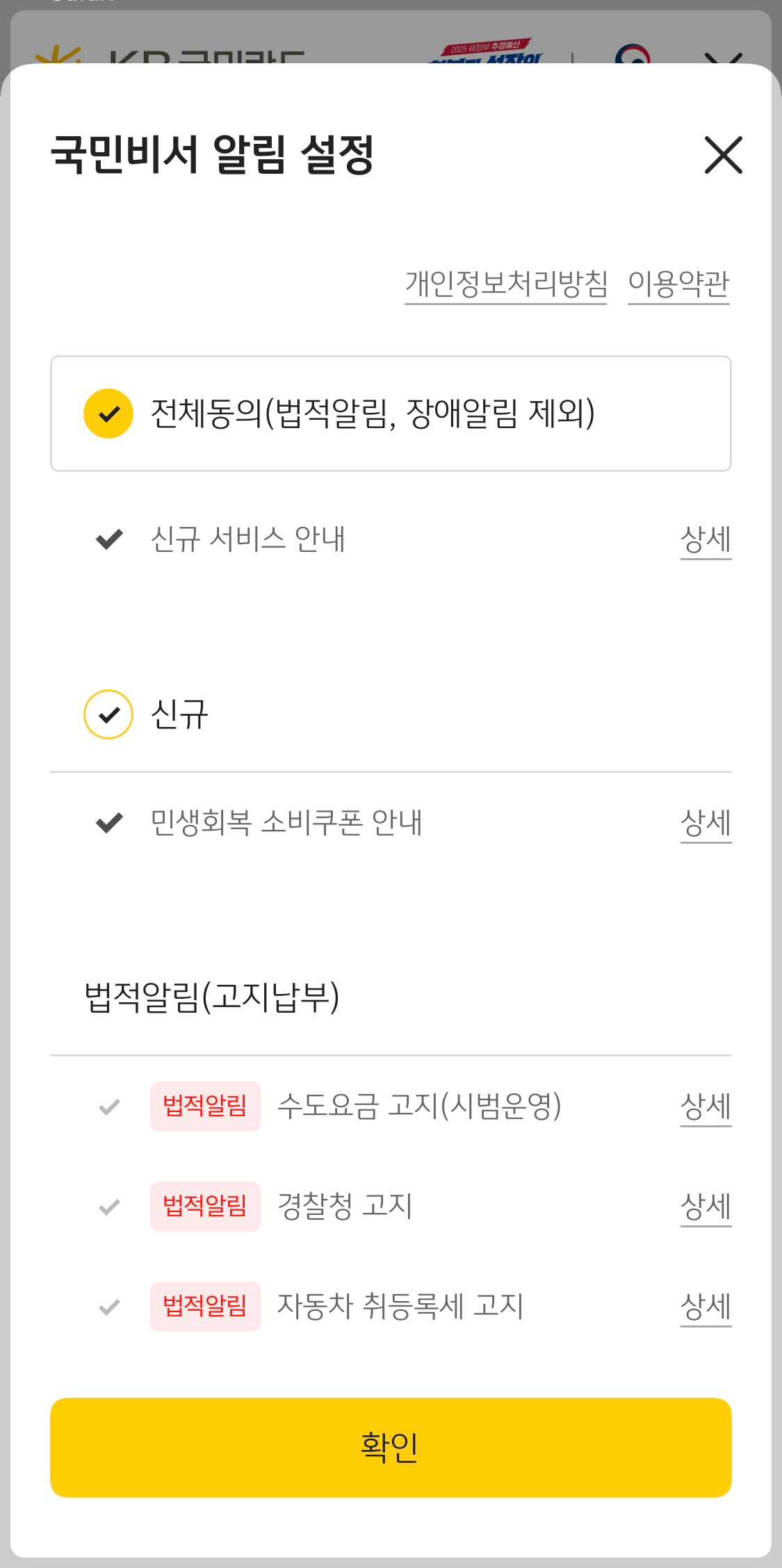 법적알림이나 건강/주거/복지 등의 관련 알림도 체크해주시면 되세요.