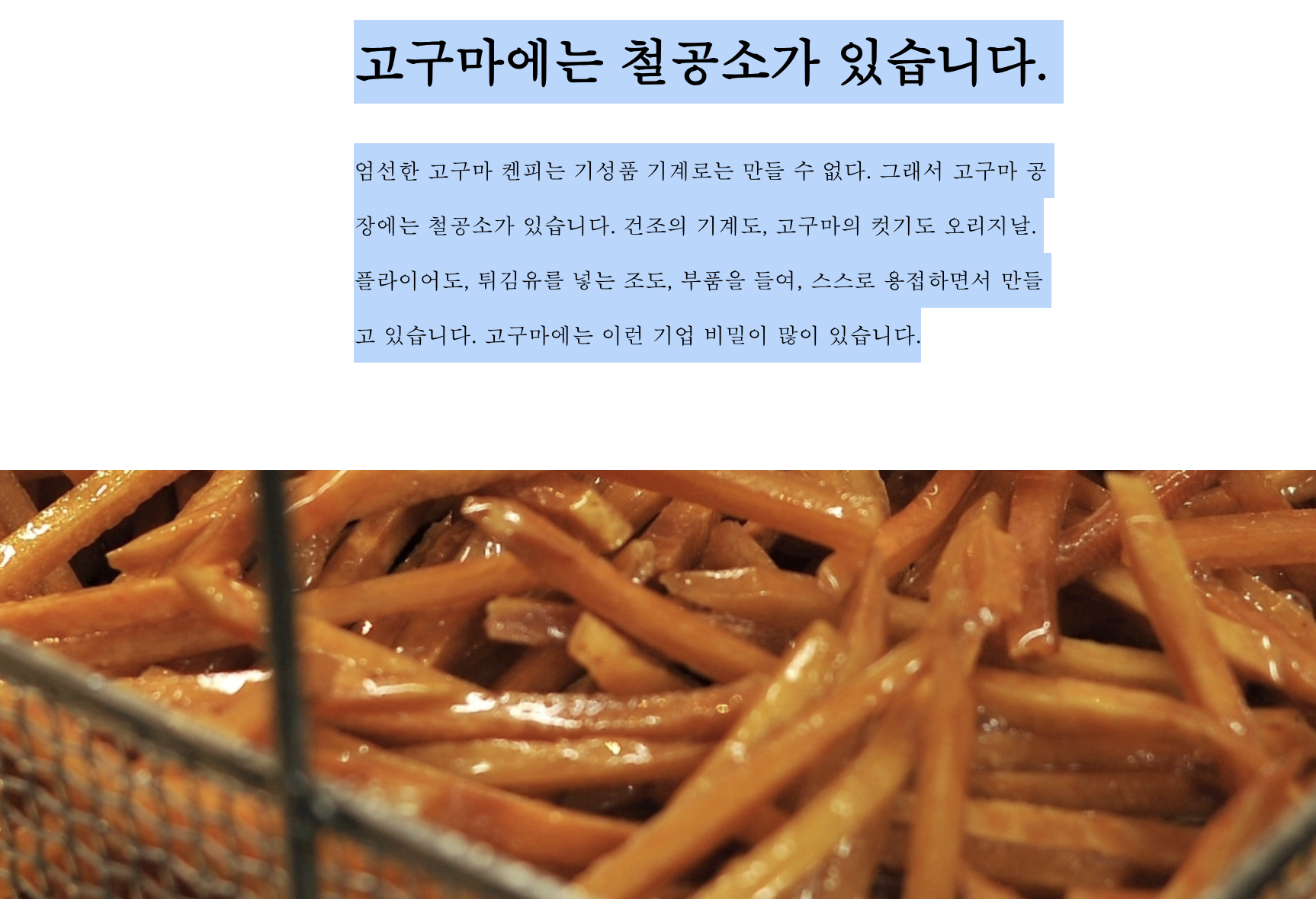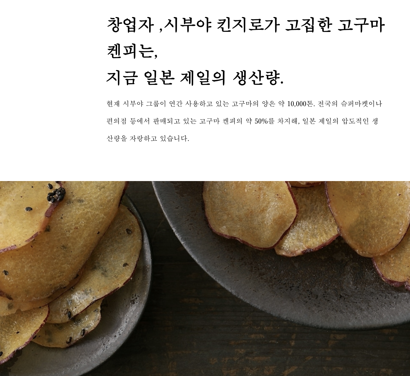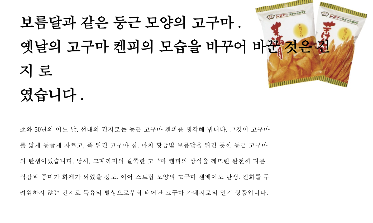 창업 이래, 오직 이모켄피(고구마 스틱) 하나.