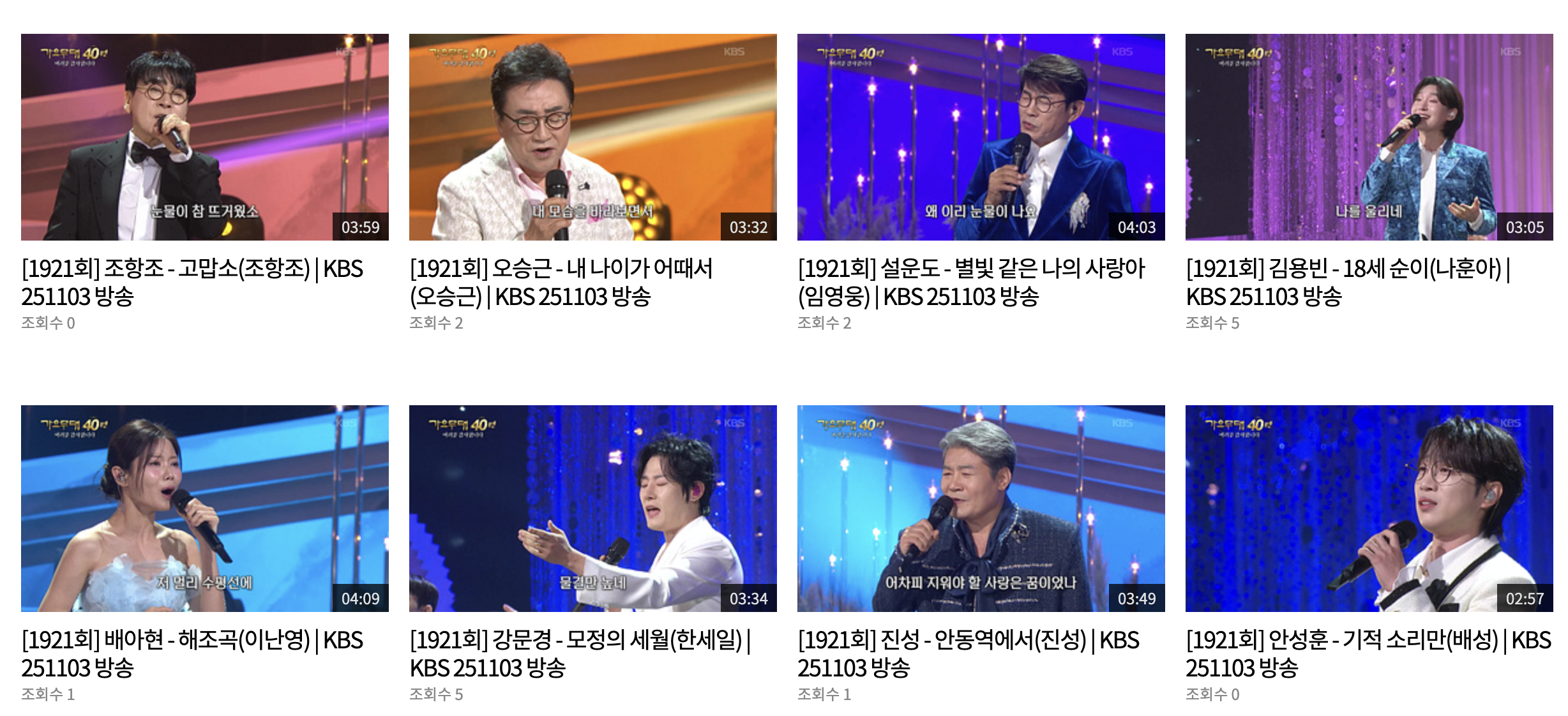 3. 🎤 2025년 11월 3일 1921회 -가요무대 40주년 특별방송!