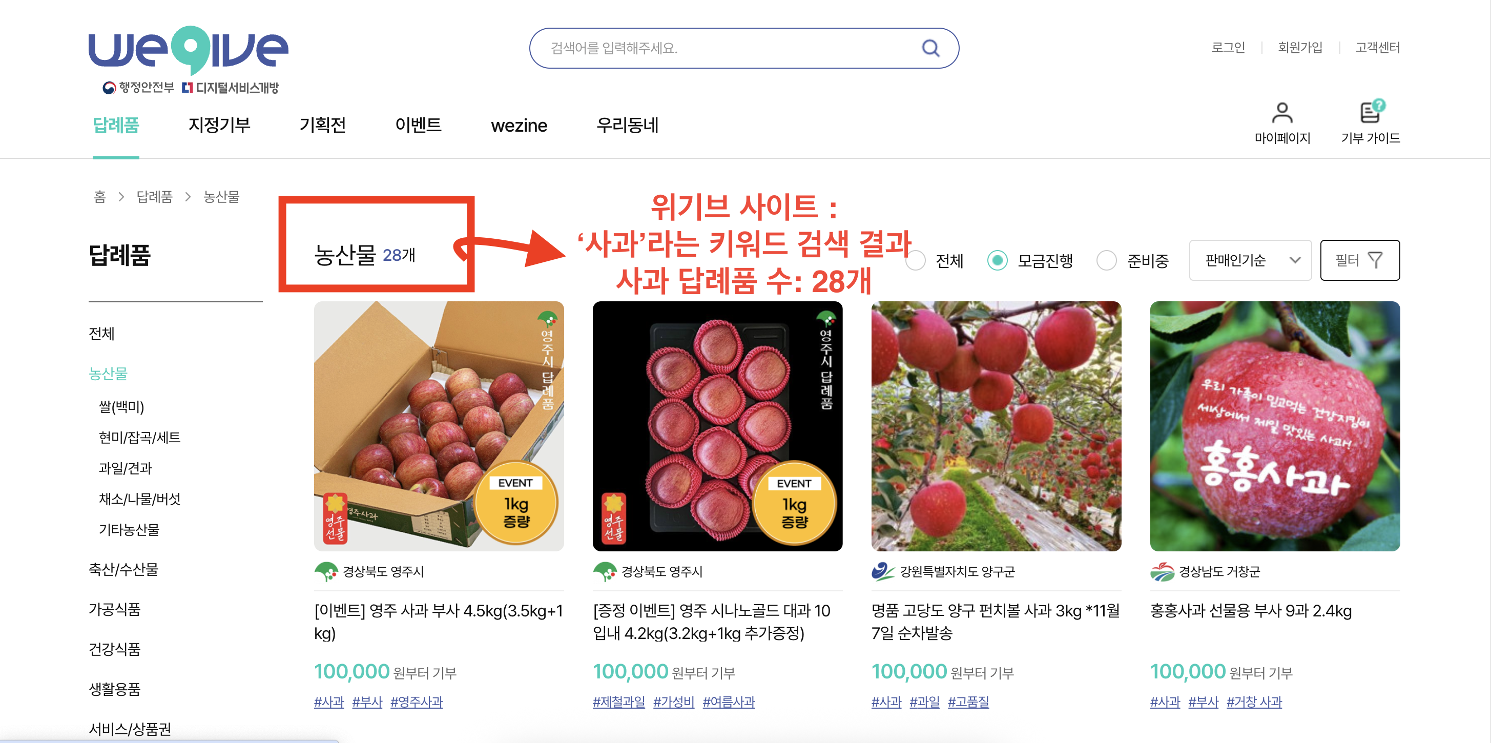 🍎 위기브 - 사과 답례품 총 28종