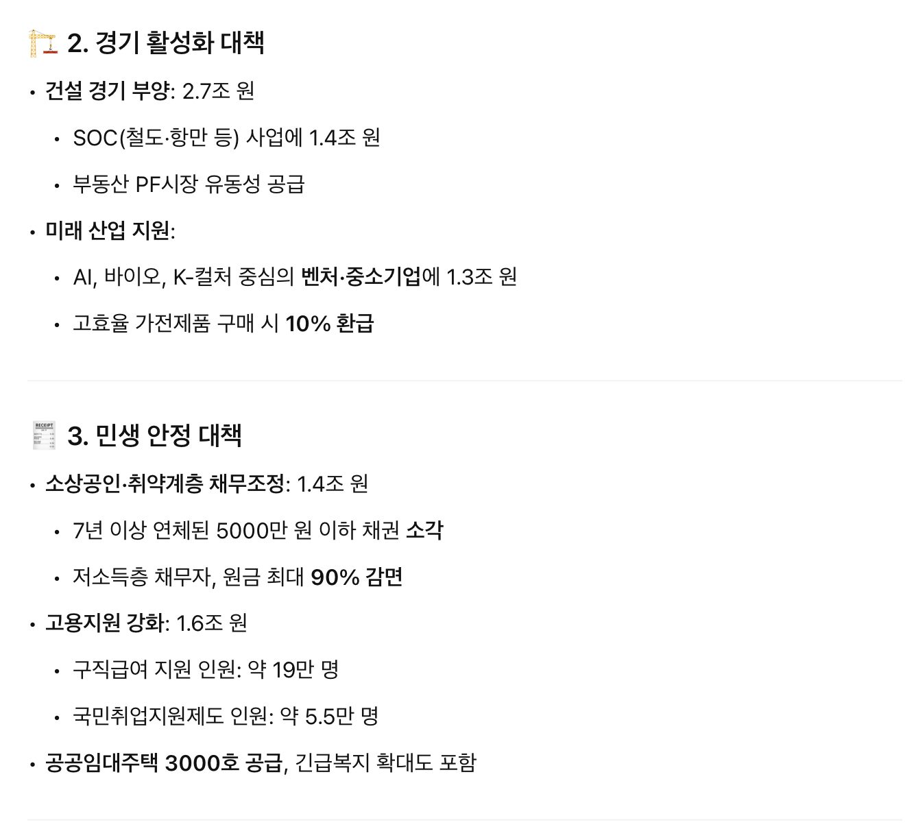 - 민생 안정: 5조 원